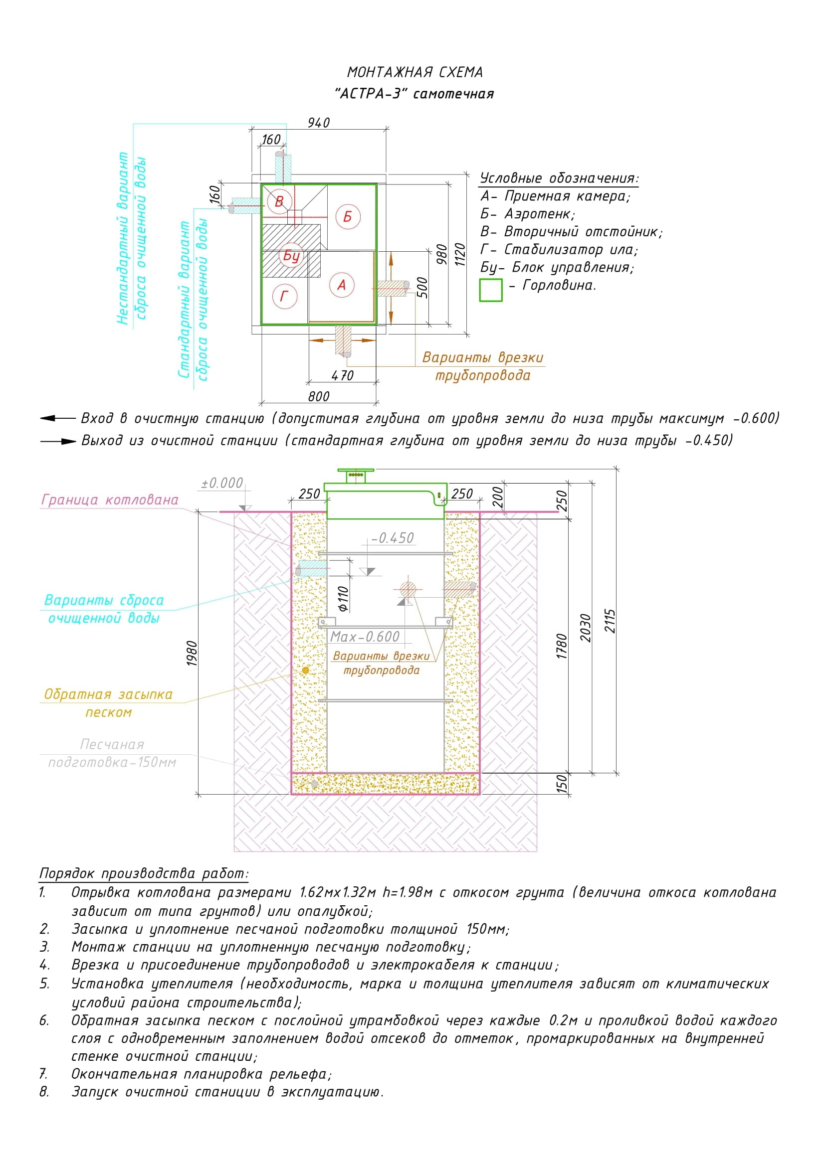 Лонг — высота станции 3,00 м. Врезка (вход трубы) до 1,50 м от уровня земли до нижнего края трубы.